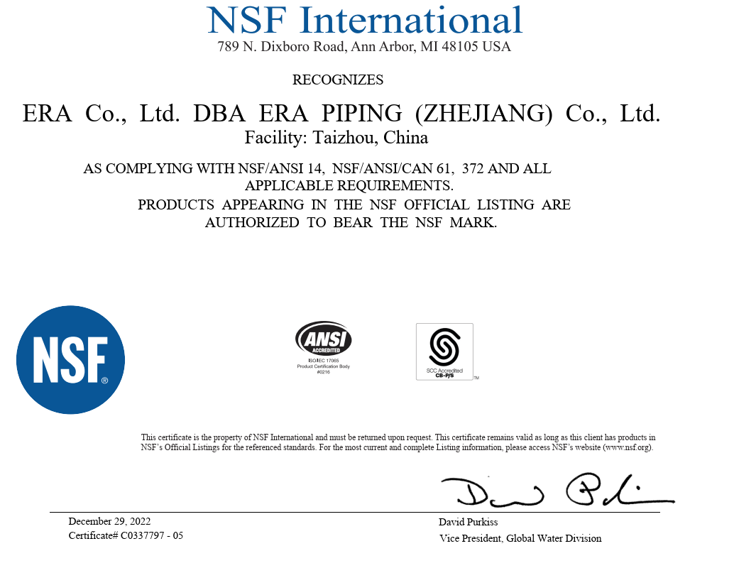 La formule de matière première PVC développée indépendamment a passé les tests de certification NSF. Notre formule exclusive a été certifiée et prise en charge, stable et fiable.